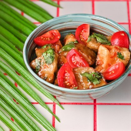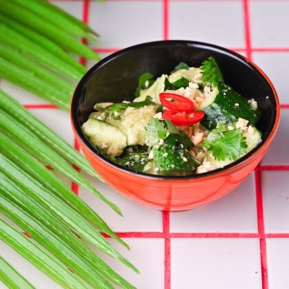Хрустящие грибочки муэр, с болгарским перцем, кинзой, кунжутом.