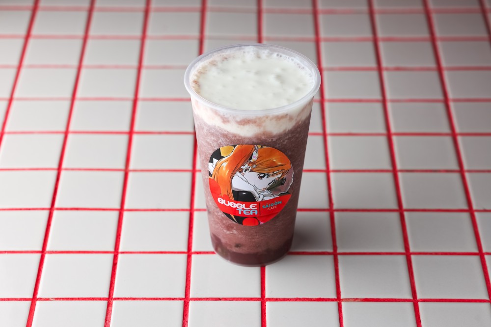 Вкуснейший напиток с сырной пенкой и кристалл-боллами с добавлением пюре голубики , сироп груши.
