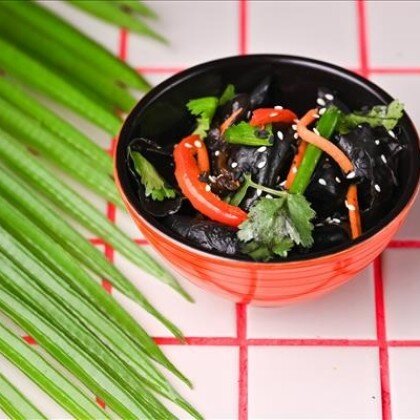 Классический салат корейской кухни с множеством приправ. Очень остро!