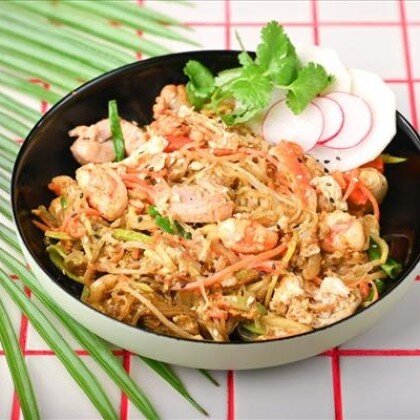 Классическое блюдо тайской кухни. Обжаренный рис с добавлением яйца, овощей, курицы. Подается с кусочком лайма