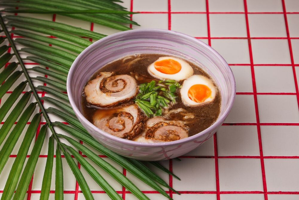 Насыщенный японский суп на основе бульона из свинины длительного томления, с кремовой текстурой. Подаётся с пшеничной лапшой, нежной свининой, яйцом и зелёным луком