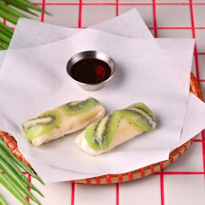 Популярные китайские рулетики с яблоком и корицей в ванильном топпинге