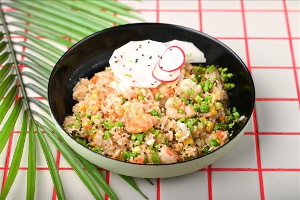 Классическое блюдо тайской кухни. Обжаренный рис с добавлением яйца, овощей, креветок. Подается с кусочком лайма.