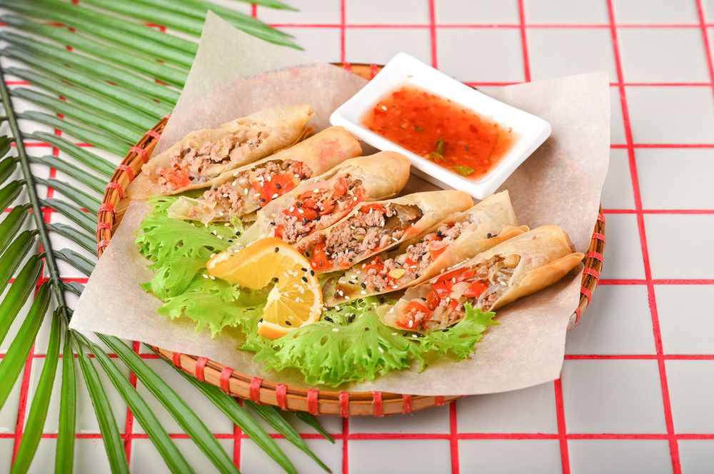 Популярные китайские рулетики с куриной начинкой, с добавлением овощей. Подаются с соусом свит чили.